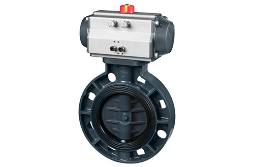 气动蝶阀厂家包括阀体的左、右端盖上的孔分别与二位四通电磁阀负载口相连接;上、下端盖分别固定在阀体两端面;工字形的圆柱阀芯,其两端大圆柱面上的槽内装有密封圈,工字形的圆柱阀芯中部的小圆柱面上、下平面相平行,并开有一个偏向一侧的通孔,工字形的圆柱阀芯装在阀体内,两端盖上的通孔能与小圆柱面孔连通;两端盖的台阶圆柱面轴向开有均布的孔内装有一定预压量的弹簧,弹簧的一端紧压套在两端盖一端的环上,并通过端面开有槽,槽内装有硬质密封圈的环,将硬质密封圈紧压在阀芯的两平面上。它将阀门和气动驱动气缸复合成一体,回转驱动球阀阀芯改为平行驱动,具有结构简单,体积小,可靠性高的优点。可应用于各种流体的控制系统中。