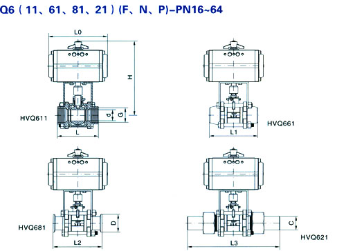 主要外形及连接尺寸 AQ6(11、61、81、21)(F、N、P)-16-64