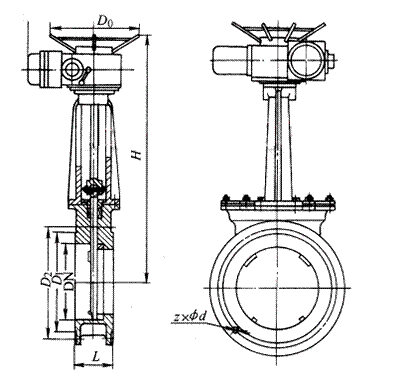 PN1.0MPa下的电动刀闸阀外形尺寸