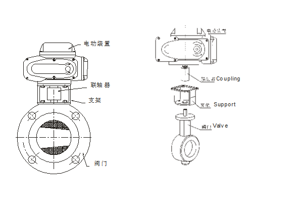 4,确定执行器状态为全关位置后将其输出轴插入固定于阀杆的联轴器中;